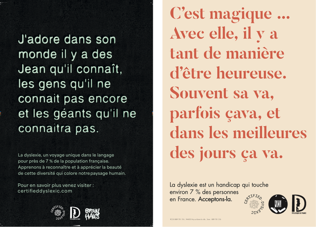 Un grand merci à l’Association Dyslexic de France pour son soutien, à JCDecaux pour les 500 espaces offerts, à KVC PRINT pour sa générosité sur l’impression, et à toutes les personnes ayant participé à la cagnotte et rendu ce projet possible.